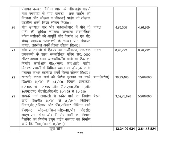 शिमला।जिला सोलन की अर्की में लगे बागा सीमेंट कारखाने की ओर से जिला खनिज फाउंडेशन ट्रस्ट के तहत बागा खनन पटटे पर ली गई जमीन से 15 किलोमीटर की परिधि तक विभिन्न खनन प्रभावित पंचायतों को कुल तीन करोड़ 61 लाख 43 हजार 824 रुपए की रकम मंजूर की गई हैं। जबकि ट्रस्ट को कारखाने की ओर से अप्रैल 2022 से 15 जनवरी 2024 तक 14 करोड़ 73 लाख 62 हजार 448 रुपए जमा कराए गए हैं।