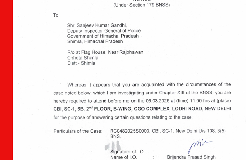 विमल नेगी की रहस्यमय मौत के मामले की जांच कर रहे सीबीआई के डीएसपी ब्रिजेंद्र प्रसाद सिंह ने भारतीय न्याय संहिता यानी बीएनएसएस की धारा 179 के तहत मुख्यमंत्री सुक्खू सिंघम आईपीएस संजीव गांधी को ये सम्मन भेजा।