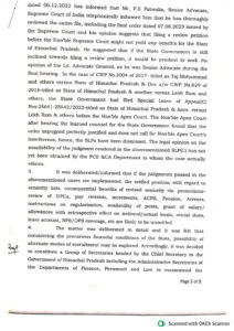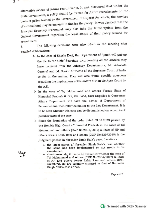 बैठक में प्रधान सचिव कर्मिक ने बताया कि सुप्रीम कोर्ट की ओर से शीला देवी बनाम हिमाचल सरकार मामले में दिए फैसले को लेकर लीगल राय यह आई है कि इसे सुप्रीम कोर्ट में चुनौती देने से कोई लाभ होने वाला नहीं हैं।