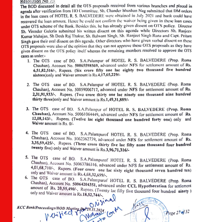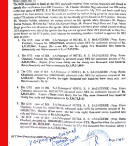 इस होटल के मामले को इस तरह से ओटीएस के तहत निपटाने का बैंक के कई निदेशकों ने विरोध किया था। इनमें से कइयों ने लिखित में अपना विरोध दर्ज कराया था जबकि कइयों ने मौखिक तौर पर विरोध दर्ज कराया था। विरोध का ये खुलासा बैंक के निदेशक मंडल की हुई बैठक की 29 नंवबर 2024 की प्रोसीडिंग्स में दर्ज हैं।