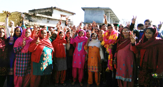 हमीरपुर।सुजानपुर विधानसभा क्षेत्र से कांग्रेस की टिकट पर जीत अर्जित करके व भाजपा के मुख्यमंत्री चेहरे प्रेम कुमार धूमल को धूल चटा कर समूचे प्रदेश की राजनीति में जबरदस्त उल्टफेर करने वाले राजेंद्र राणा का सुजानपुर विधानसभा क्षेत्र की विभिन्न पंचायतों में ग्रामीणों ने ढोल.नगाड़ों व आतिशबाजी के साथ स्वागत किया गया। जगह जगह राजेंद्र राणा के अभिनंदन के लिए हजारों की तादाद में महिलाएं, पुरुष, युवा व बुजुर्ग उमड़े हुए थे। बमसन क्षेत्र में भी लोगों ने राजेंद्र राणा को सर आंखों पर बिठाया ।महिलाओं ने न केवल राजेंद्र राणा की आरती उतारी बल्कि ढोल की थाप पर नाटी भी डाली। बुजुर्ग मतदाताओं ने राजेंद्र राणा के सिर पर हाथ रख कर उन्हें भरपूर आशीष व शुभकामनाएं दी।